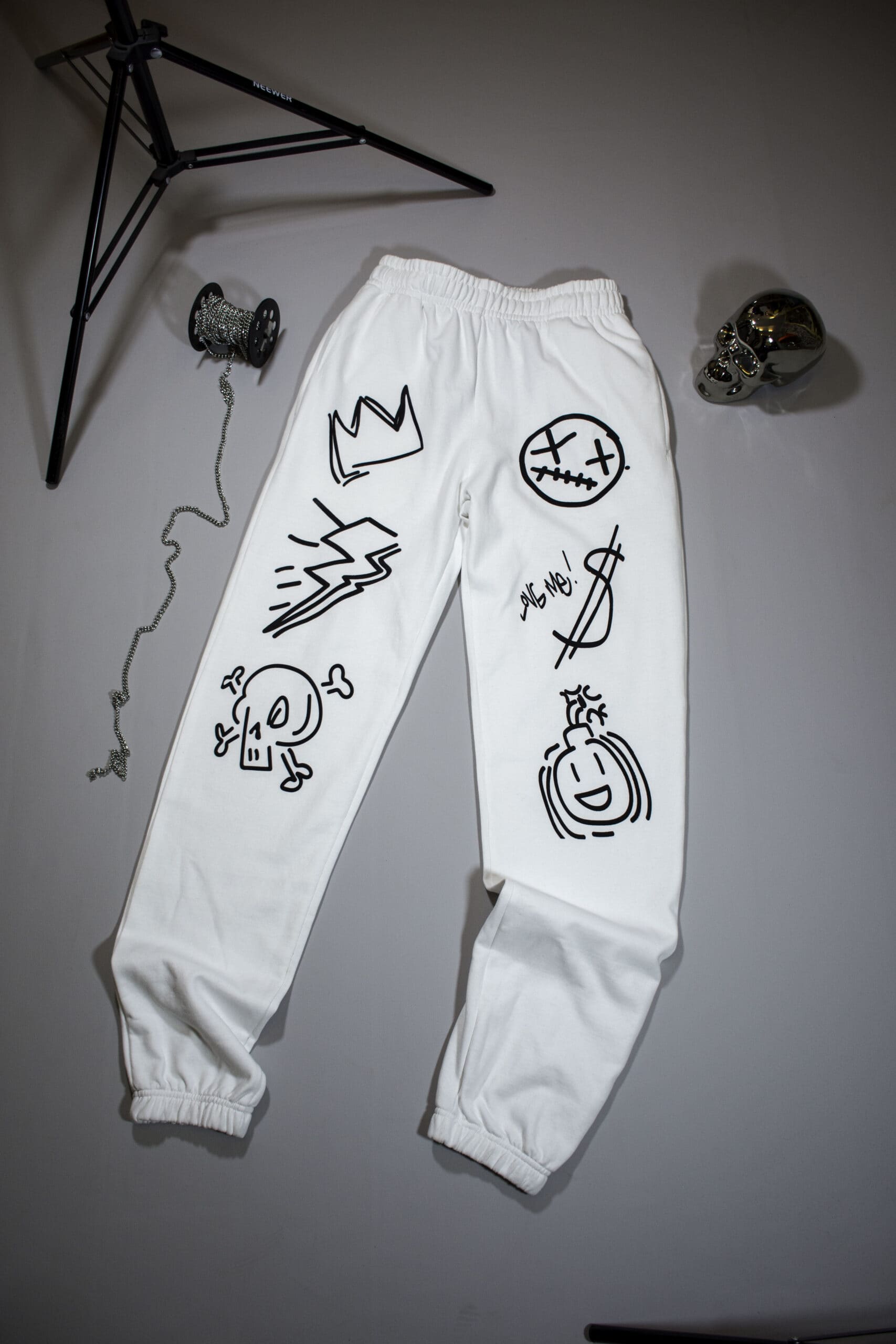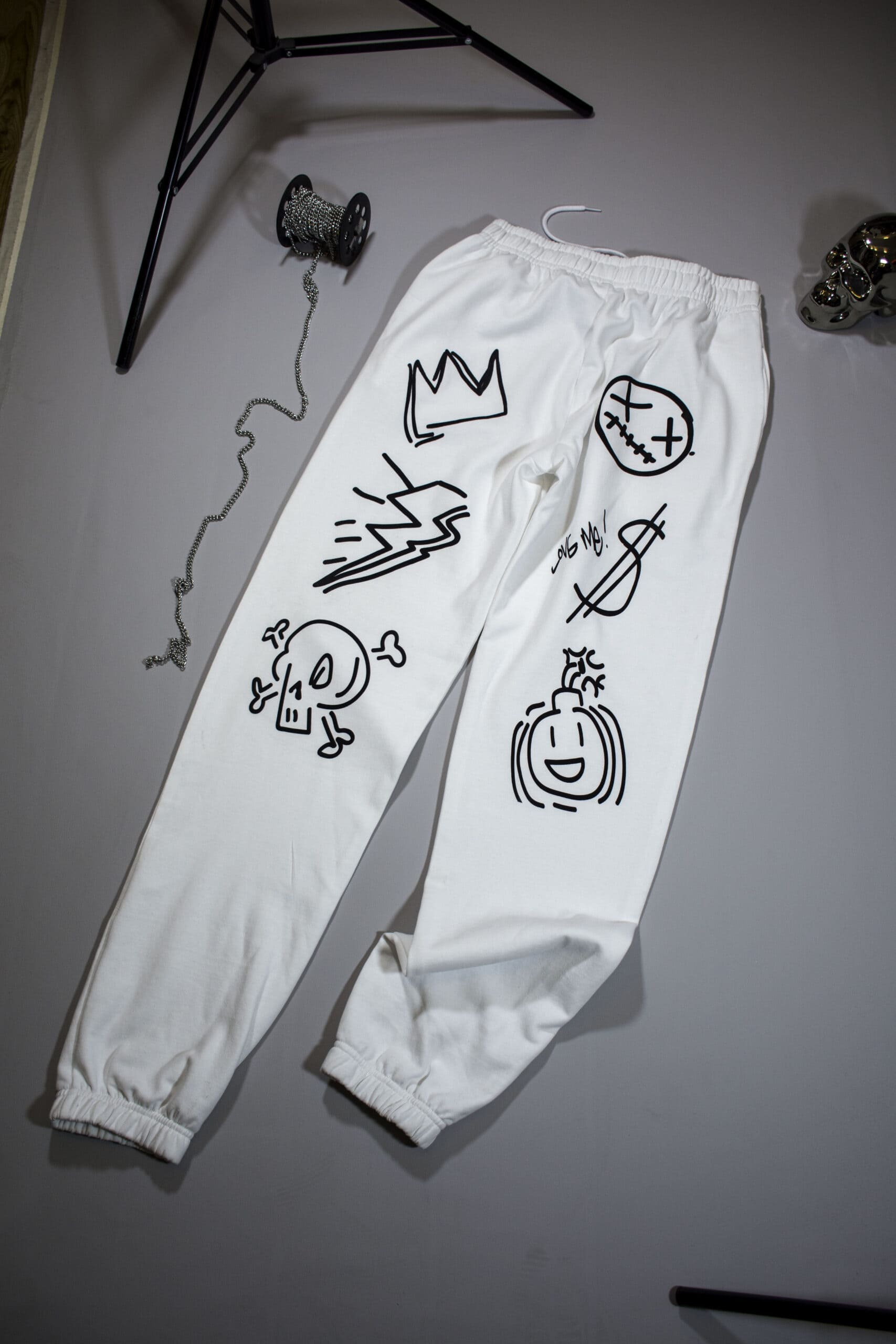 Misterharty • Bottoms • WHITE DOODLES SWEATPANTS